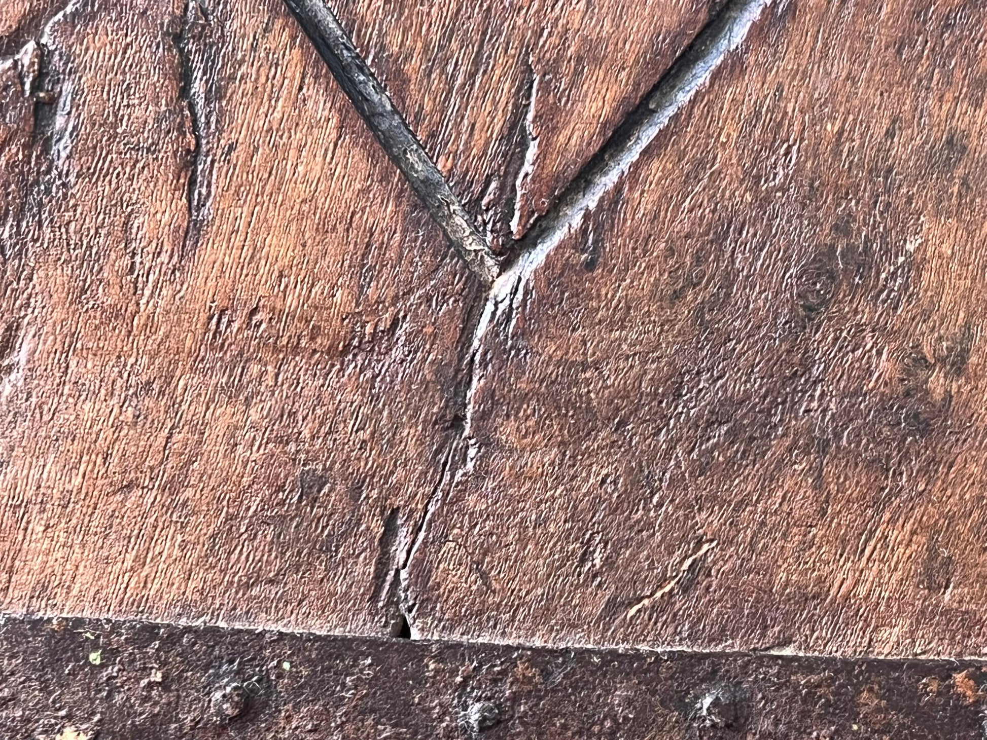 As we have retained this piece in its original state, it features the initials "J. Malwani" painted on it in the Gujarati language. This was a common practice for identification among joint families living together.